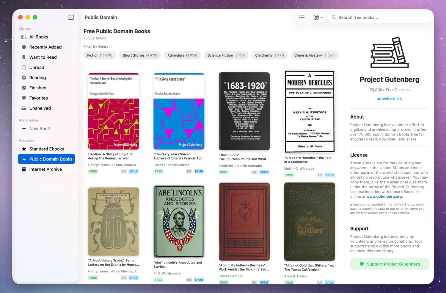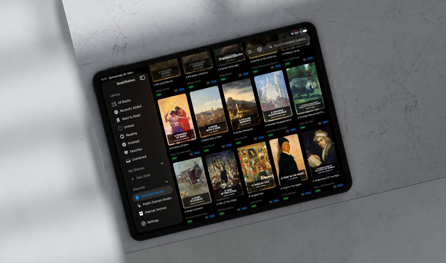 BookShelves ermöglicht es, digitale Lesekollektionen übersichtlich zu organisieren und bietet Zugriff auf tausende kostenlose Klassiker, unter anderem von Standard Books und dem Internet Archive. Besonders hervorzuheben ist die nahtlose Integration in das Apple-Ökosystem: Nutzer und Nutzerinnen können ihre Lesefortschritte auf iPhone, iPad und Mac synchronisieren und so jederzeit und überall auf ihre Bücher zugreifen. Die App verzichtet bewusst auf Werbung und setzt auf eine intuitive Bedienung.