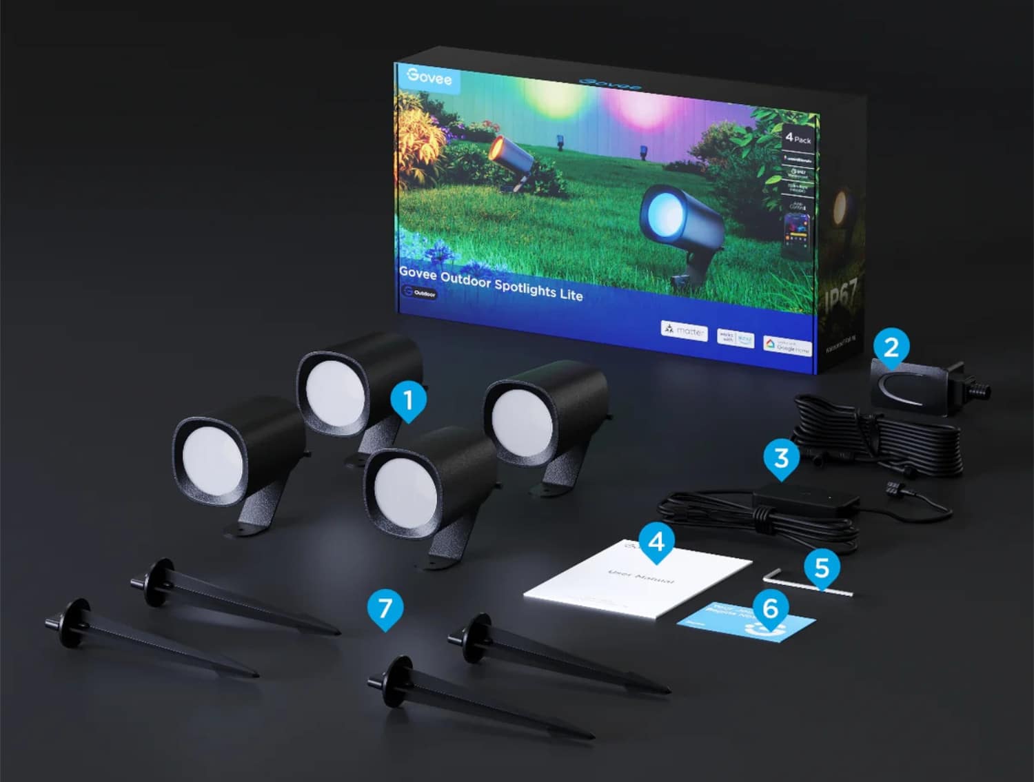 Das ist im Lieferumfang der Govee Outdoor Spotlights Lite enthalten.