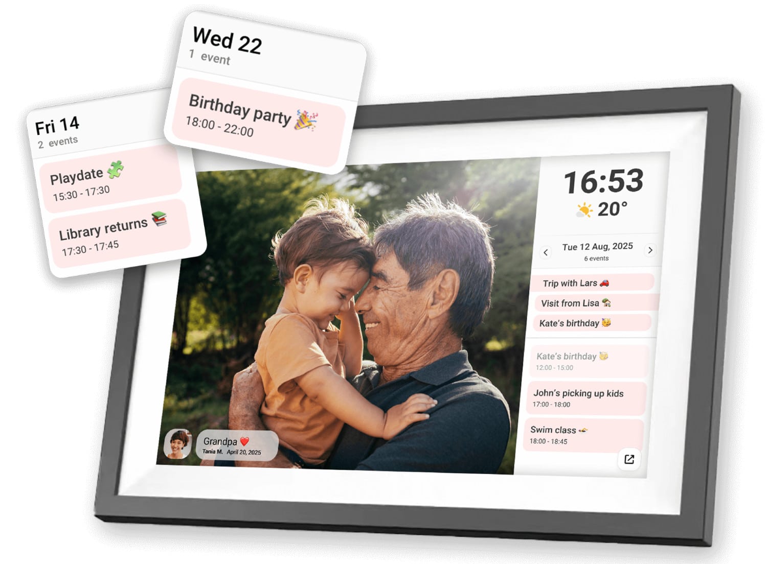 Die Einrichtung der neuen Funktion gestaltet sich unkompliziert: Über die Frameo-App auf dem Smartphone lässt sich ein bestehender Kalender, etwa von Google oder Outlook, in wenigen Schritten verbinden. Eine schrittweise Anleitung führt durch den Prozess, so dass der eigene Zeitplan innerhalb kürzester Zeit synchronisiert wird. Änderungen, die anschließend auf dem Smartphone vorgenommen werden, werden in Echtzeit auf dem Frameo aktualisiert.