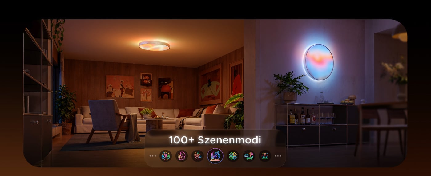 Trotz aller Spielereien eignet sich die 53 Zentimeter breite Ceiling Light Ultra auch als vollwertige Raumbeleuchtung. Mit bis zu 5.000 Lumen ist sie hell genug für größere Räume von etwa 18 bis 28 Quadratmetern. Die CRI-95-Farbdarstellung sorgt für natürliche Farben und angenehme Hauttöne, während der einstellbare Weißbereich von 2.700 K bis 6.500 K von gemütlich warm bis konzentriert kühl reicht.
