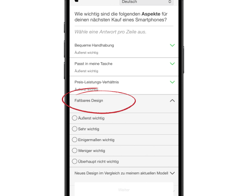 Apple führt derzeit eine Online-Umfrage unter deutschsprachigen iPhone-Nutzern durch. Darin erkundigt sich das Unternehmen unter anderem nach den Erwartungen an das nächste Smartphone. Neben Kriterien wie Handhabung, Größe und Preis-Leistungs-Verhältnis steht dabei auffällig auch die Frage nach einem faltbaren Design im Fokus. Die Auswahl reicht von „äußerst wichtig“ bis „überhaupt nicht wichtig“. Die Platzierung dieser…
