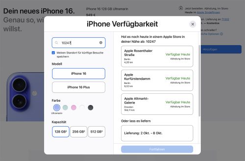 Hier noch ein Update für alle, die sich nun doch noch kurzfristig für den Kauf eines der neuen Apple-Produkte entschieden haben. Preislich gibt es hier am ersten Verkaufstag noch keine Unterschiede, von daher könnt ihr euch voll und ganz auf die von den Händlern gemachten Verfügbarkeitsangaben konzentrieren. Und gerade, weil man die neuen Geräte sowieso…