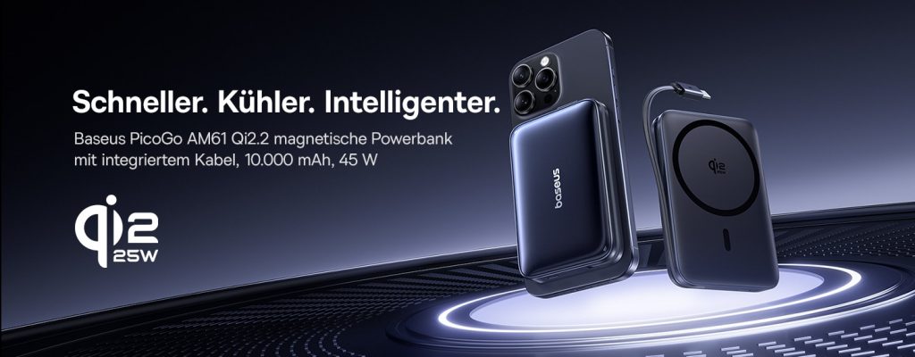 Mit Qi2 25 Watt kann man auch endlich iPhones schneller kabellos aufladen und immer mehr Anbieter integrieren den neuen Standard in ihre Geräte. Die Baseus PicoGo Powerbank (Amazon-Link) sieht ziemlich spannend aus, da es hier zusätzlich ein integriertes Ladekabel gibt. Darüber hinaus kannst du sparen, denn zum Start steht ein Coupon auf der Produktseite bereit….