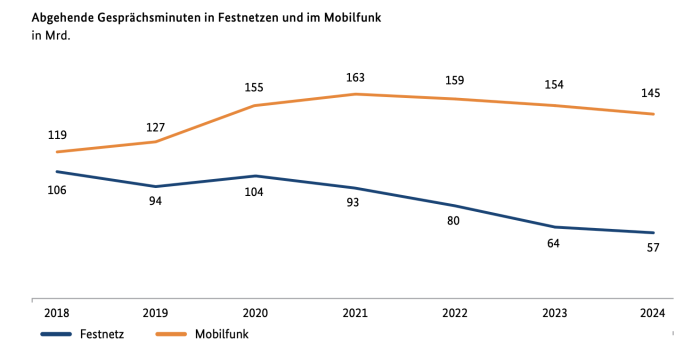 Die Mobilfunknutzung in Deutschland verzeichnete 2024 einen leichten Rückgang bei den Gesprächsminuten. Wie aus dem aktuellen Jahresbericht der Bundesnetzagentur hervorgeht, wurden im Inland rund 148 Milliarden abgehende Gesprächsminuten über Mobilfunknetze geführt – etwa vier Prozent weniger als im Vorjahr. Durchschnittlich telefonierten Nutzer mit aktivem SIM-Profil rund 115 Minuten pro Monat. Die abnehmende Nutzung klassischer Telefonie…