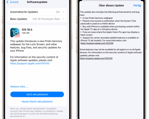 Apple hat am Dienstagabend den sogenannten Release Candidate der nächsten iOS-Aktualisierung auf Version 18.5 veröffentlicht. Das Update wird voraussichtlich in der kommenden Woche für iPhone-Nutzer bereitgestellt und bringt mehrere Neuerungen mit sich. Neben kleineren Funktionsanpassungen rückt Apple die Bildschirmzeit und mobile Satellitenkonnektivität in den Fokus. Verbesserungen für Familien und neue Kaufoptionen Mit iOS 18.5 reagiert…