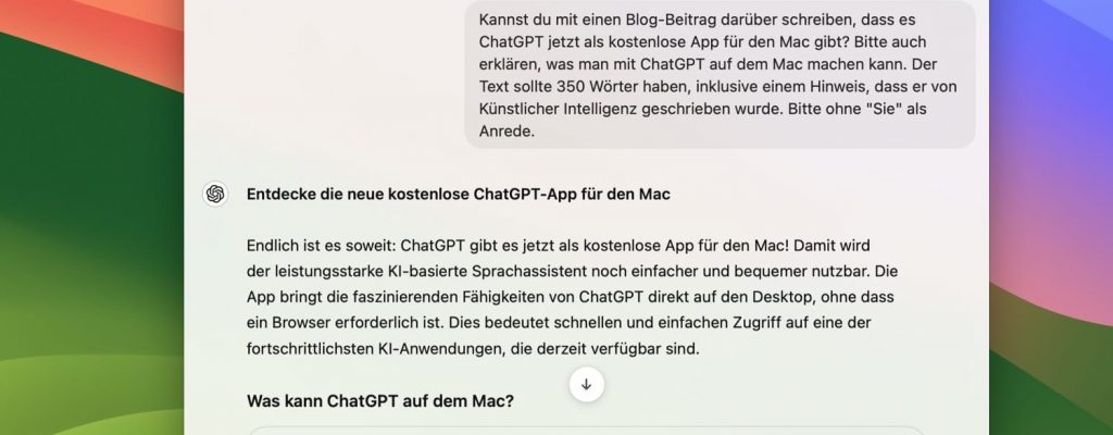 Endlich ist es soweit: ChatGPT gibt es jetzt als kostenlose App für den Mac! Damit wird der leistungsstarke KI-basierte Sprachassistent noch einfacher und bequemer nutzbar. Die App bringt die faszinierenden Fähigkeiten von ChatGPT direkt auf den Desktop, ohne dass ein Browser erforderlich ist. Dies bedeutet schnellen und einfachen Zugriff auf eine der fortschrittlichsten KI-Anwendungen, die…