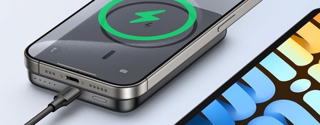 Die Ugreen Powerbank mit MagSafe (Amazon-Link) wird einfach magnetisch auf der Rückseite des iPhones befestigt und gibt ihren Strom kabellos ab. Mit 10.000 mAh ist die Kapazität hoch, dafür ist der Rucksack-Akku etwas größer. Ein iPhone 15 kann zum Beispiel 1,9 Mal aufgeladen werden, ein iPhone 14 Pro Max 1,7 Mal. Die magnetische Aufladung erfolgt mit…