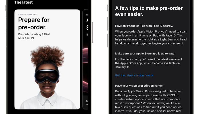 In einer Woche starten die Vorbestellungen für die Apple Vision Pro in den USA. So nach und nach klärt uns Apple im Vorfeld nun auch über die Details und Eigenheiten des Bestellprozesses auf. So wurde die US-Version der Apple-Store-App um ein paar wichtige Hinweise diesbezüglich erweitert. Wer dort einer der ersten sein will, der in…
